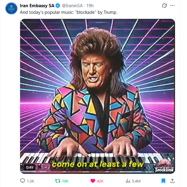 Trump's new musical hit Blockade, courtesy of the Iranian meme-makers