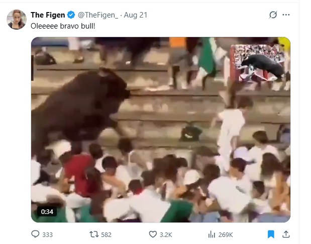 What happens when a bull escapes a bullfighting ring and makes it into the stands