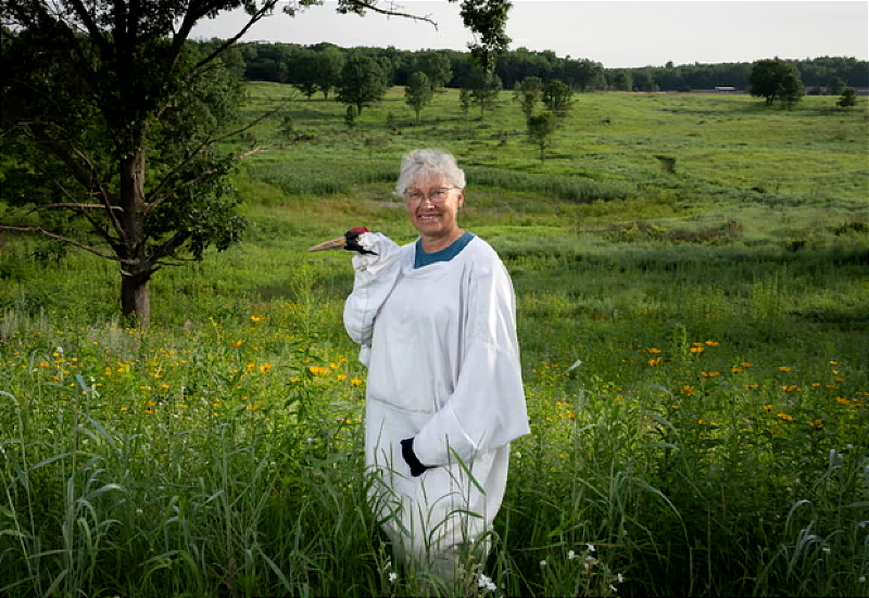 She dresses up and pretends to be a crane to help raise young orphaned birds