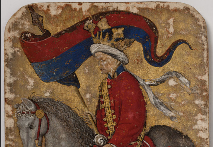 From Tim Husband for The Met: "The earliest preserved European playing cards belong to a luxury deck known as The Stuttgart Playing Cards, which date to about 1430. Exquisitely hand painted on a gold ground, each card is a work of art. The high quality of the painting and remarkably good state of preservation indicate that the pack was likely commissioned as a collector's item rather than for play. The original commissioner is unknown, but these exceptionally fine and unusually large cards soon found their way into the collections of the dukes of Bavaria. They are first mentioned in an inventory of the archducal Kunstkammer, or cabinet of curiosities, that was compiled in 1598. The suit signs of the set are Falcons, Ducks, Hounds, and Stags, and each suit comprises 13 cards."